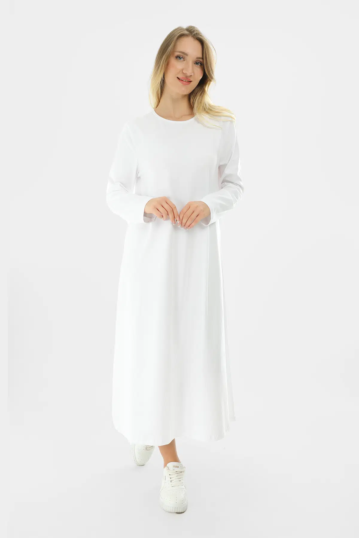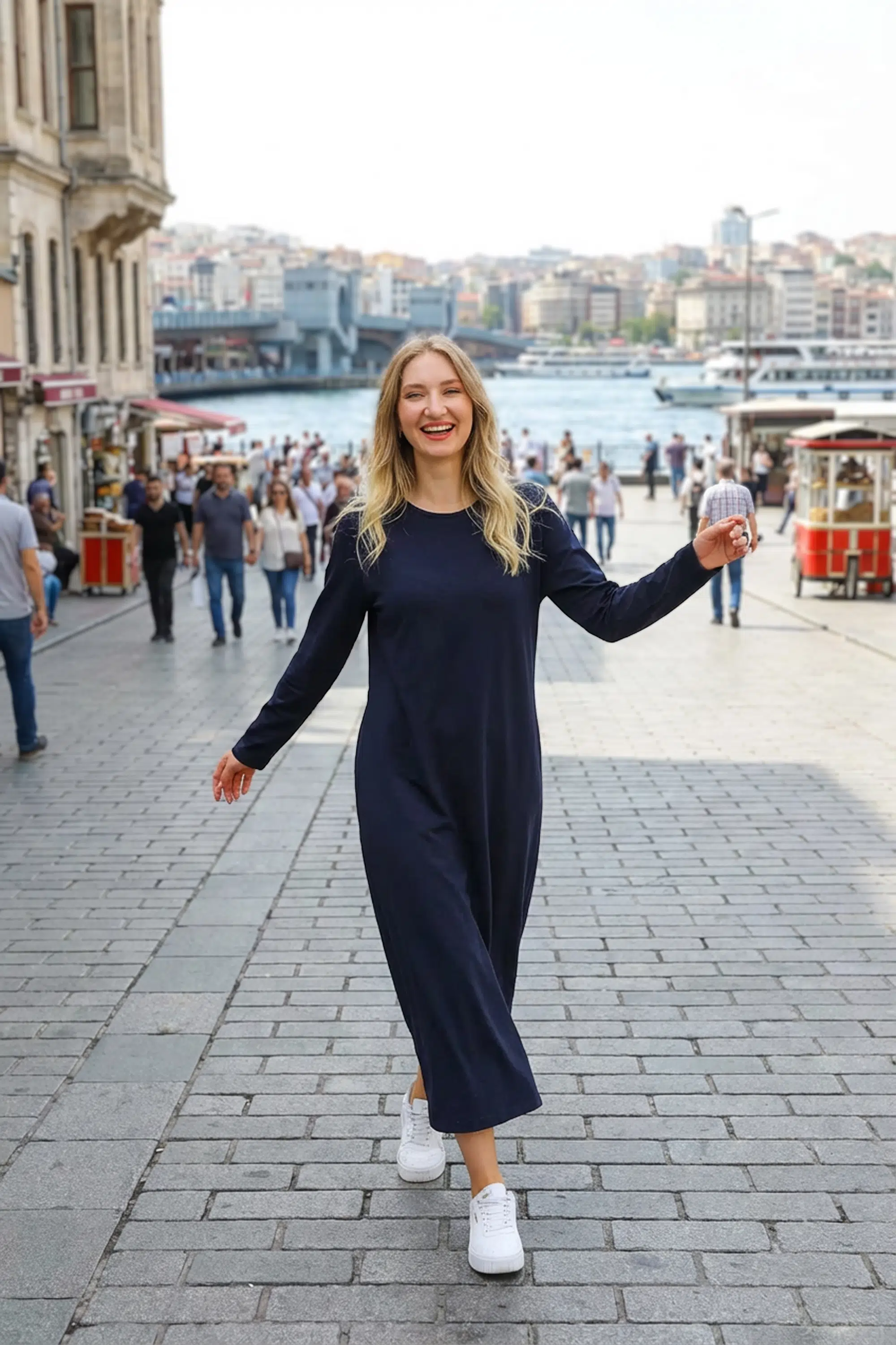 Diz altına uzanan etek boyu ve esnek yapısıyla gün boyu hareket özgürlüğü sağlar.; Ayrıca, çantanızda kolayca taşıyabileceğiniz bu elbiseyi misafirlikte veya dışarıda namaz kılmak istediğinizde hızlıca üzerinize geçirip namaz elbisesi olarak kullanabilirsiniz.;