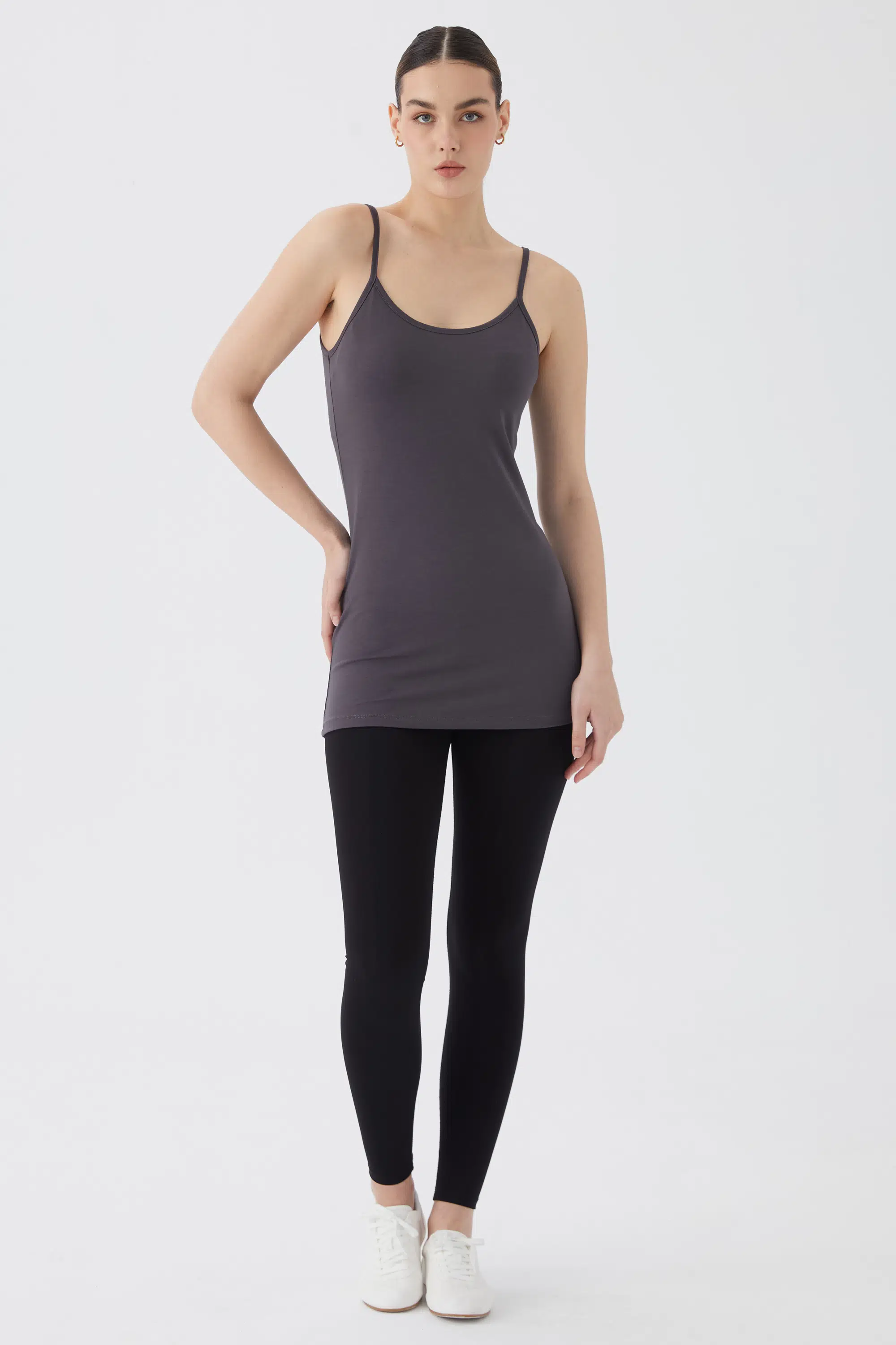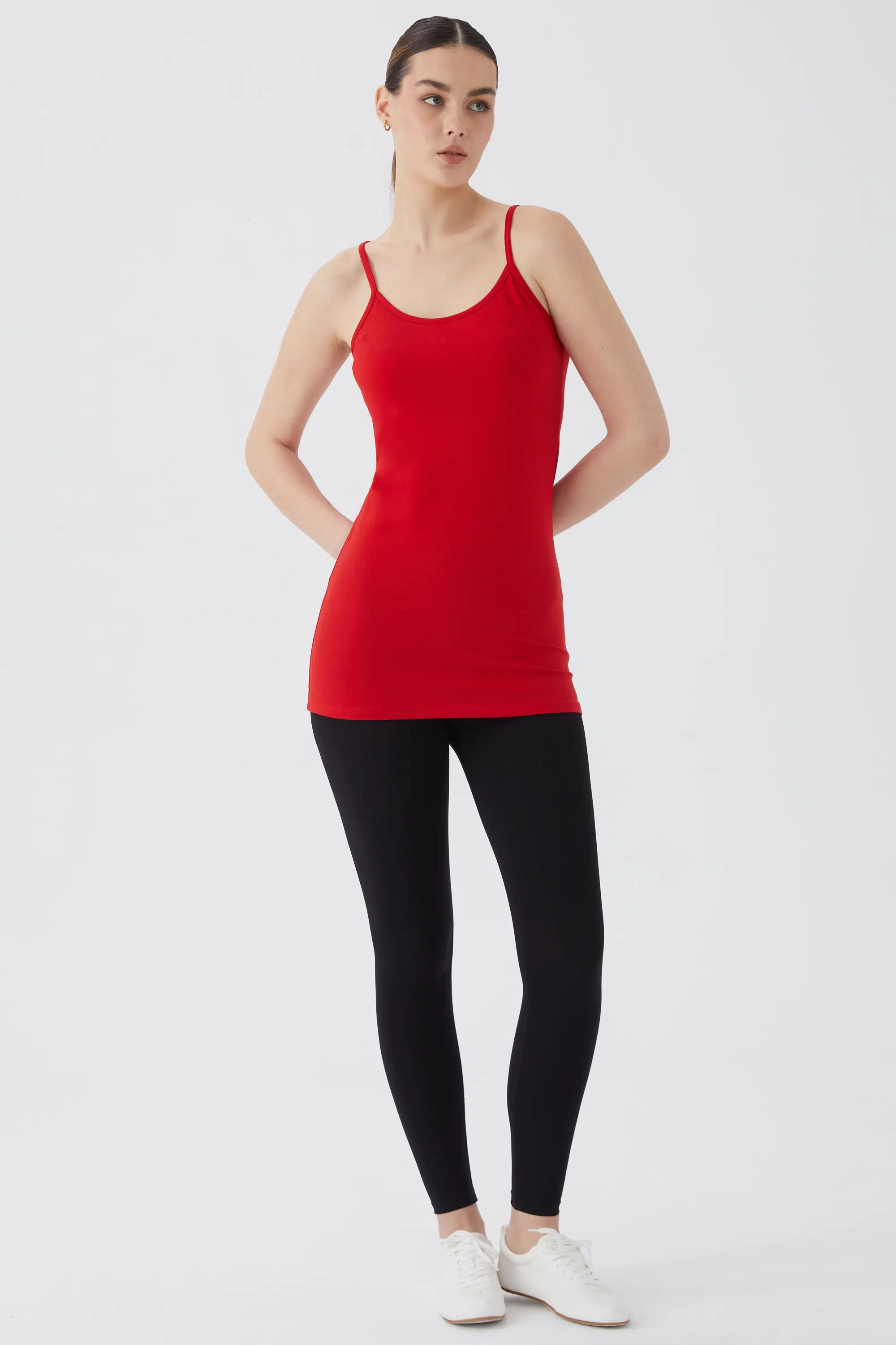 İp Askılı Pamuklu Likralı Uzun Kadın Atlet 2025- Basen Örten Uzunluk