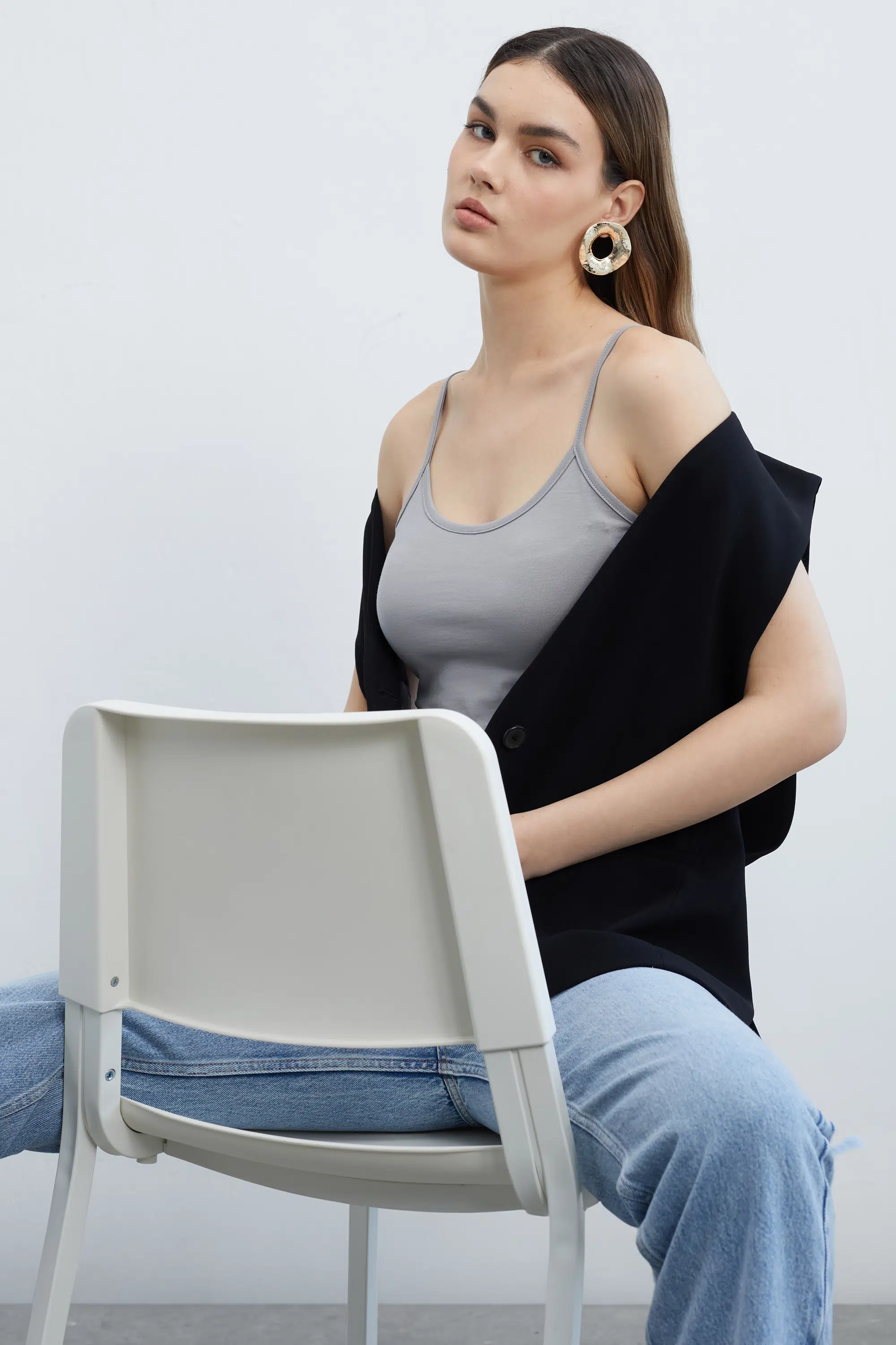 İp askılı, kalçayı örtecek kadar uzun formdaki bu kadın atlet; konforlu kalıbı, sade tarzı ve pamuklu kumaşıyla günlük giyimde vazgeçilmeziniz olmaya aday.