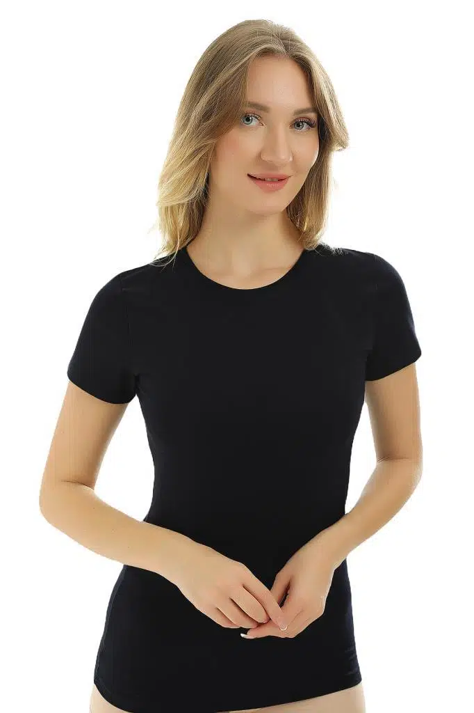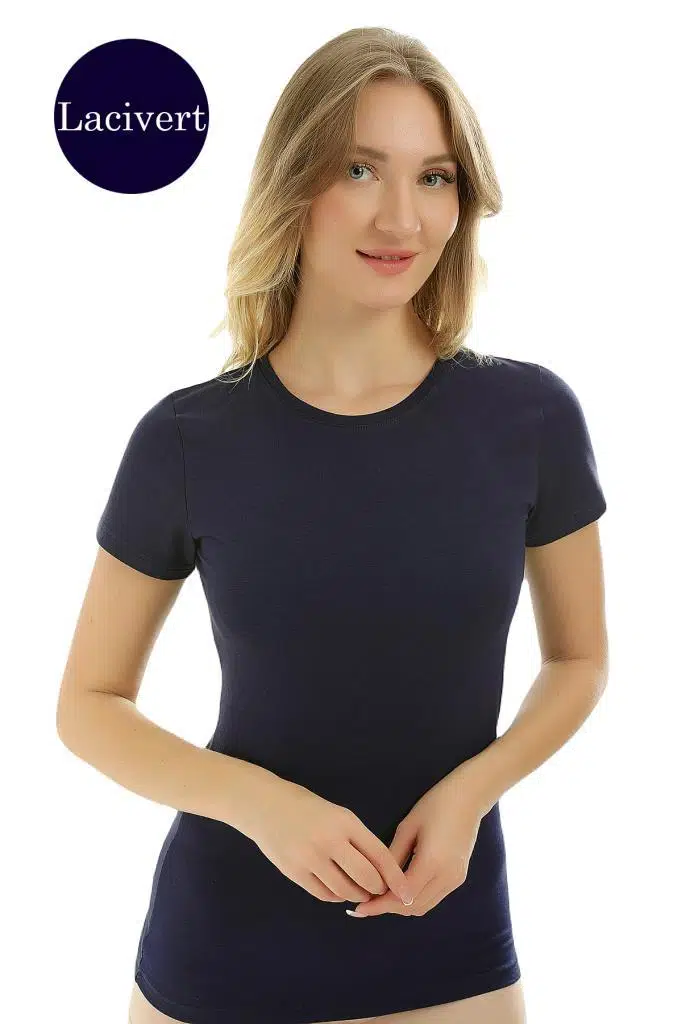 Kadın Basic Pamuklu Kısa Kollu Bisiklet Yaka Body T-Shirt – Günlük Kullanıma Uygun, İpeksi Tuşeli
