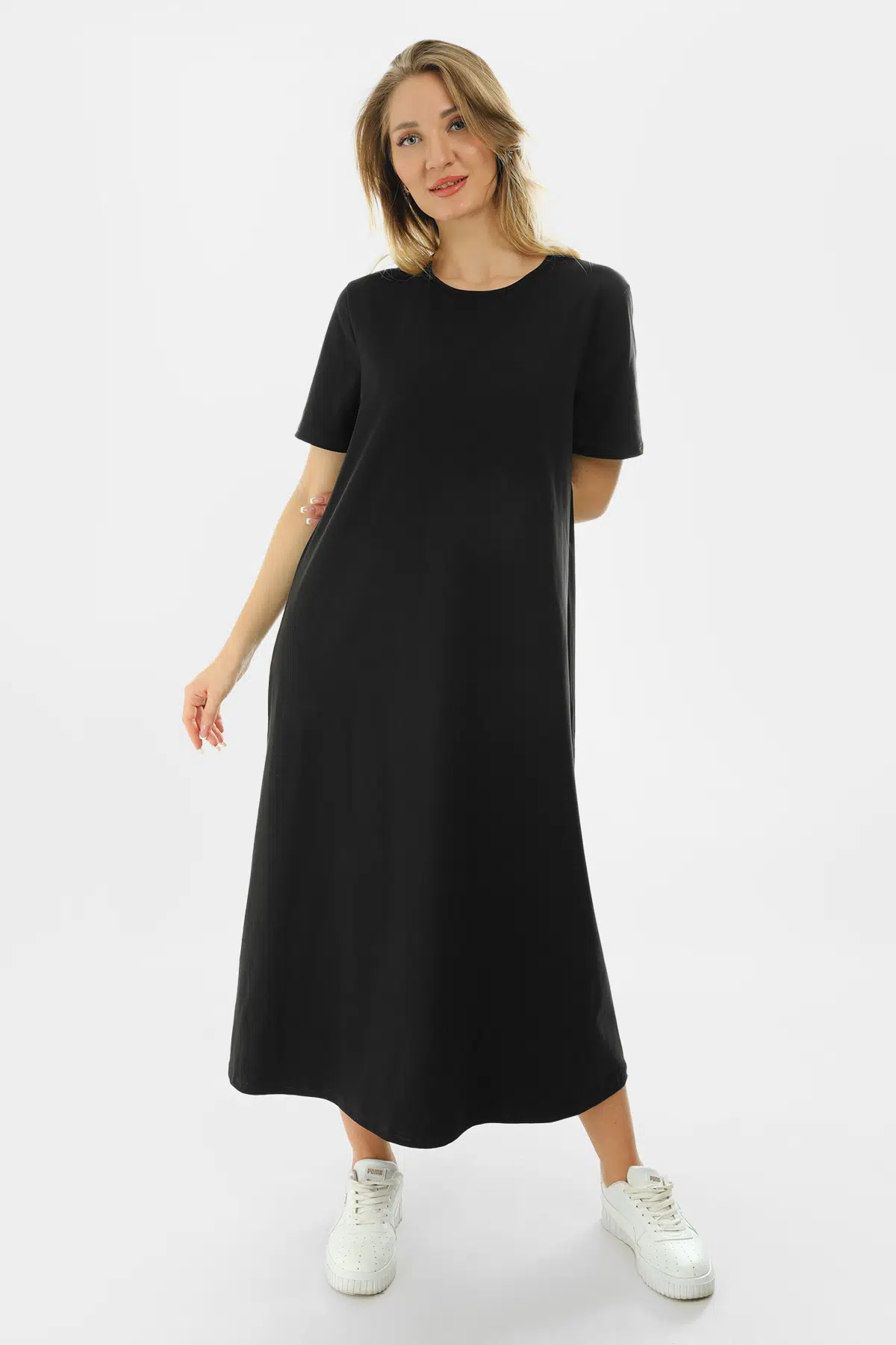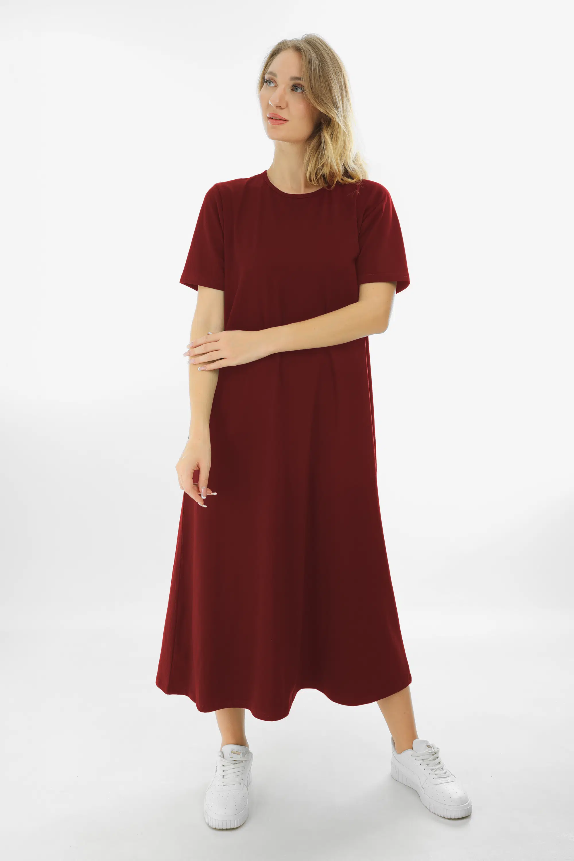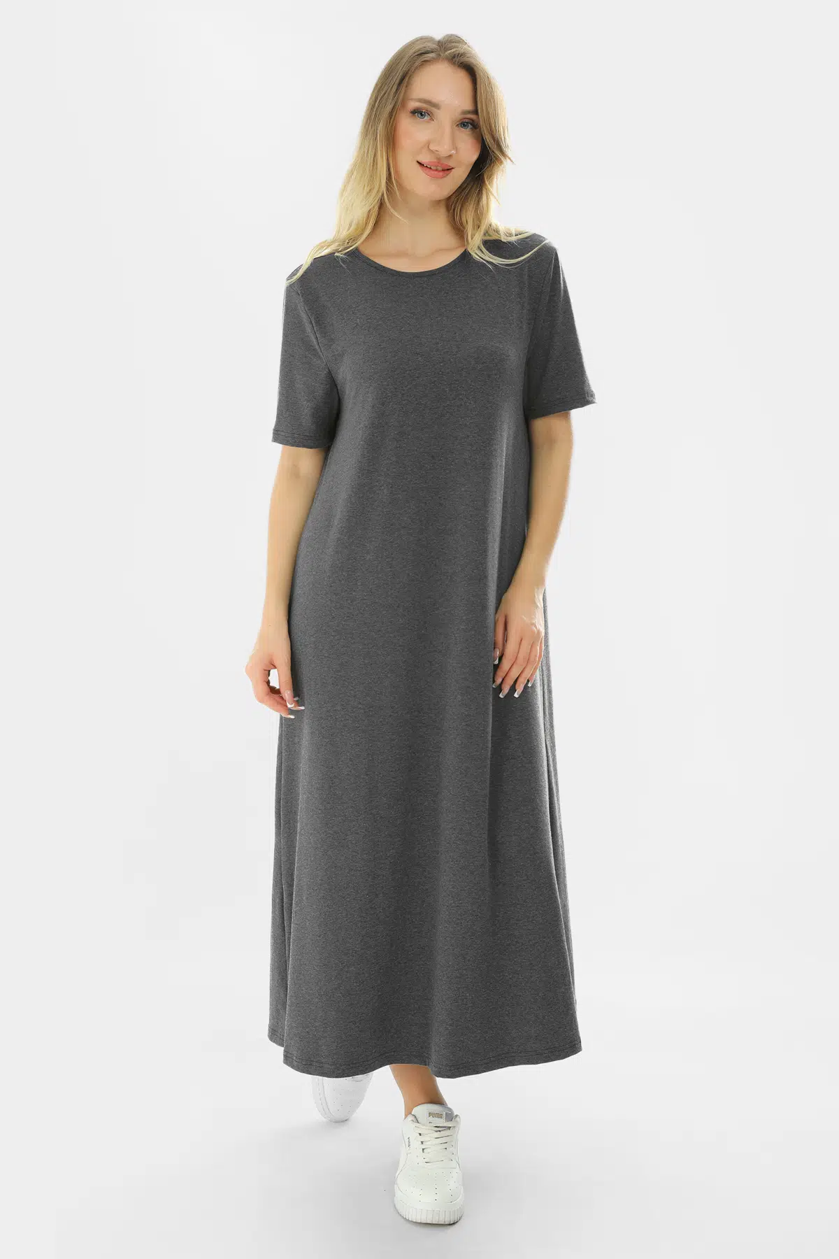 Kısa Kollu Maxi Penye Elbise 2029 - İnce ve Tok Kumaş