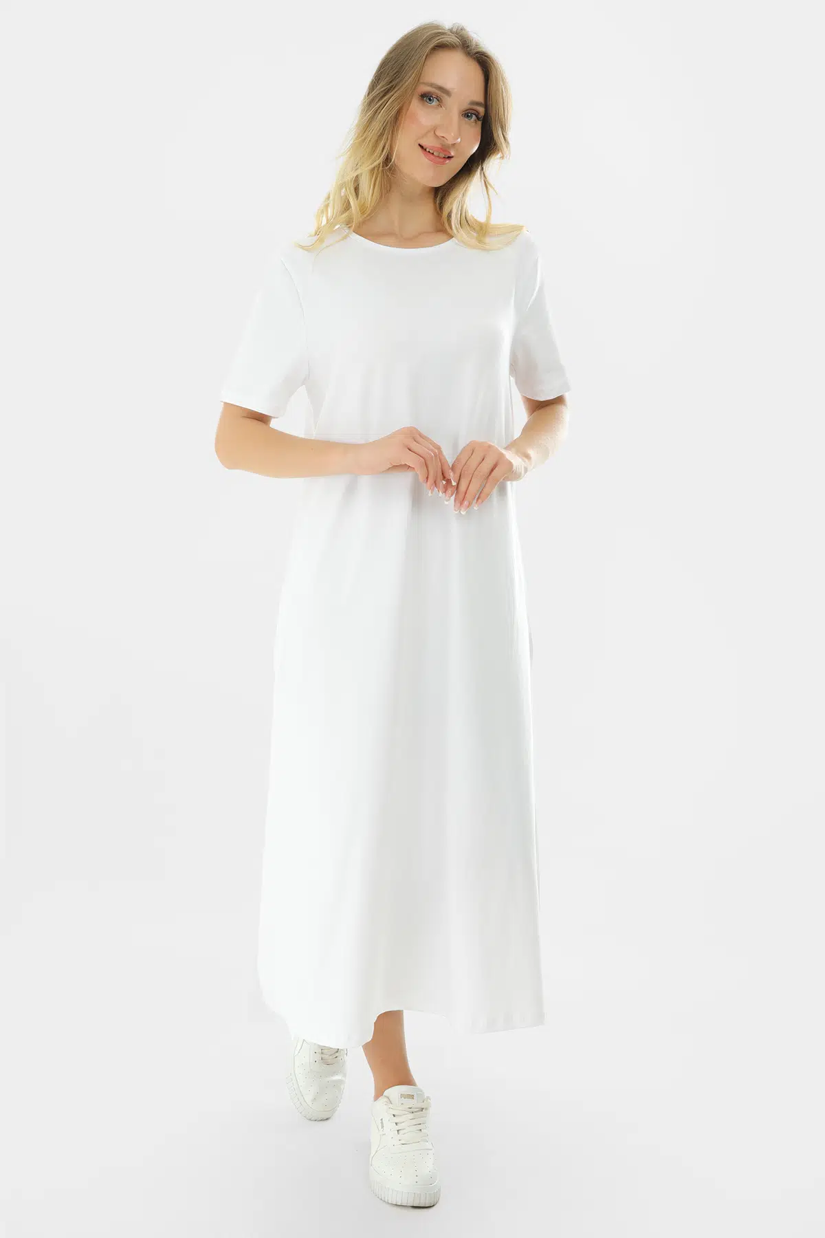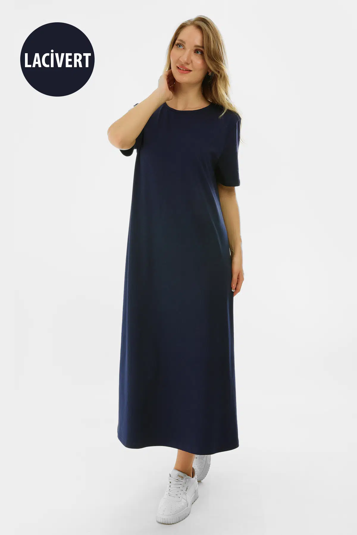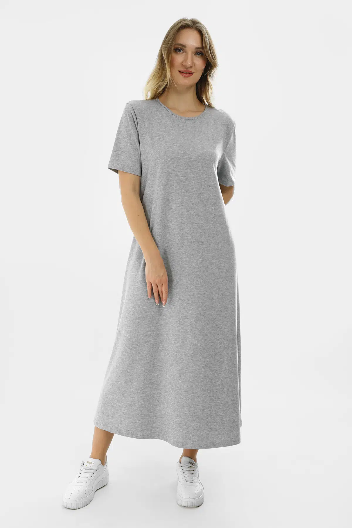 Kısa Kollu Maxi Penye Elbise 2029 - İnce ve Tok Kumaş
