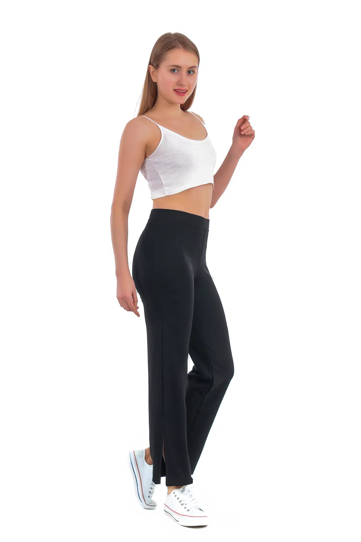 Beli lastikli ve likralı yapısı ile ekstra esneklik ve rahatlık sunarken, yandan yırtmaçlı paça detayı ile modern ve şık bir görünüm kazandırır.