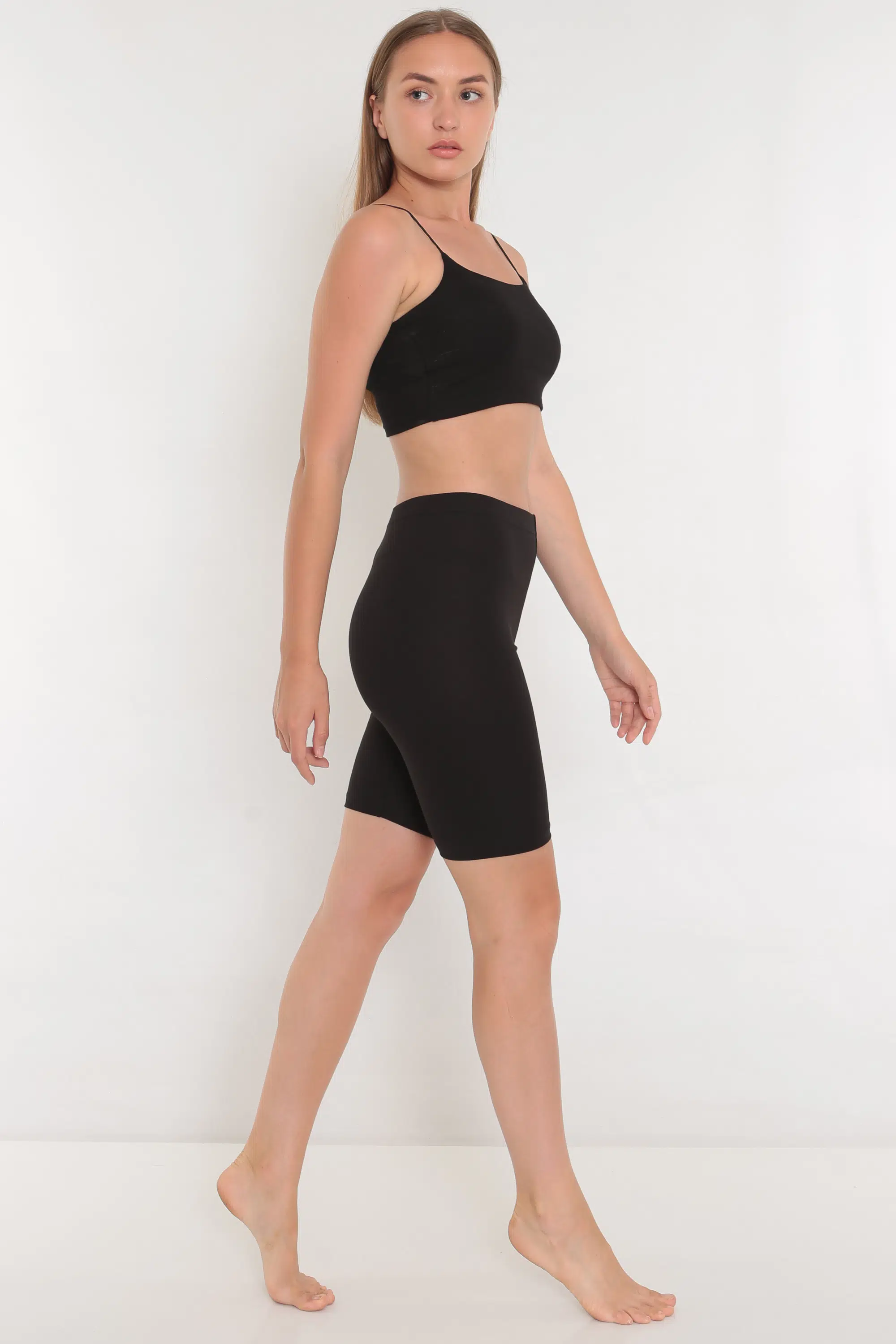 Yüksekbel Pamuklu Kadın Şort Tayt 2003 - Penye Dizüstü Tayt